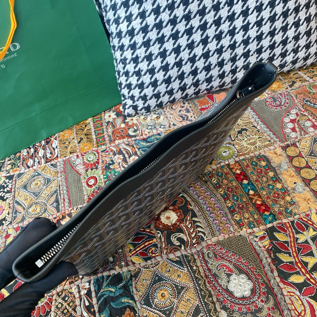 Goyard 新款手拿包CONTI手拿包是存放日常個人物品的理想伴侶。它有一條腕帶可以手拿,也可以掛在手腕上,可以在日間休閑手包或晚裝包間隨意切換,更能作為大包裏的收納袋22 cm x 6.5 cm x 24 cm , 225 g