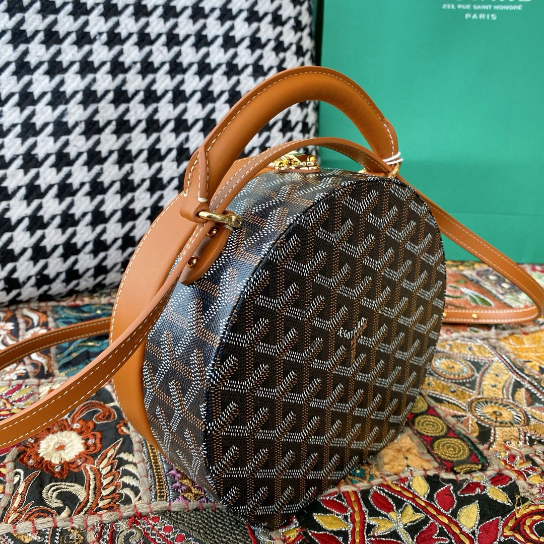 棕色拼黑色~专柜版🌈Goyard戈雅 专柜最新版升级版新色🎀 alto hatbox 老花圆饼硬盒包~18×16×8cm💕多色可选 配色经典 帆布面料带着清香 做工精致 ☺️老花纹也特别耐看~除爱马仕外最好的手工高奢品牌,低调奢华的完美诠释。配专柜全套包装送礼首选✨