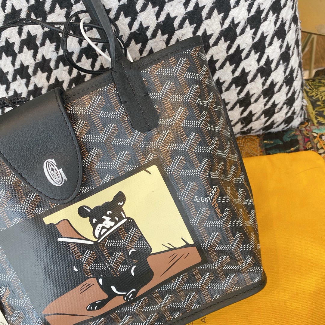 Goyard包包官方網站 Goyard如何分辨真假 Anjou Mini黑色托特包 Goyard戈雅 Anjou Mini經典Y字logo印花托特包tote購物袋子母單肩手提包28×38×10cm 法鬥圖案可選印刷版本00750 手工定製