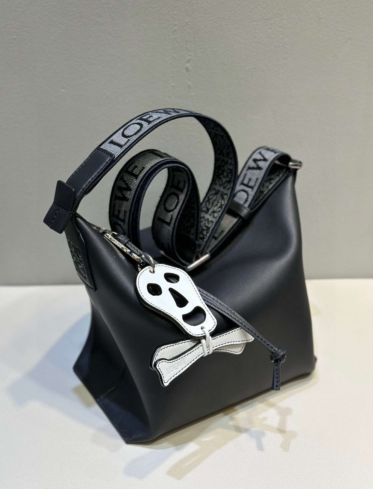 LOEWE羅意威包包2025新款官網旗艦店大全 小號黑色牛皮革 Cubi 斜挎包