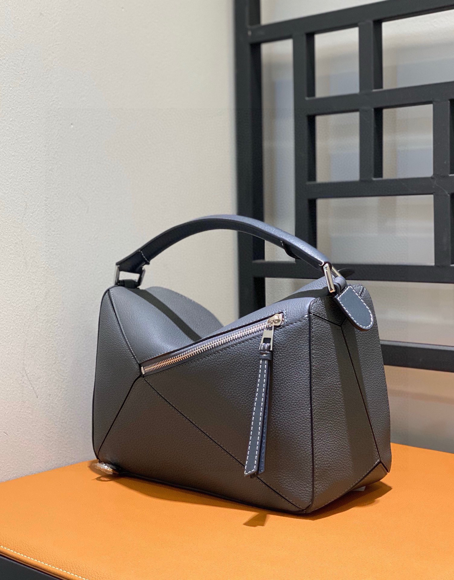 LOEWE羅意威包包經典款式官方網站專賣店灰色小號粒面牛皮革Puzzle手袋
