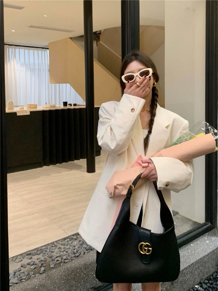 大爆款給你們安排出來了!!姐妹們沖!這只真的太費皮了,簡直就是把一場極品裏背在肩上啊,月牙的造型慵懶的狀態,看起來真的太舒服了,背上它去感受深秋的溫度,不需要太多的點綴,背上屬於自己的女主包,大hobo我真的很愛,太酷了!!整個造型簡直一擊命中,喚醒我的復古靈感!
