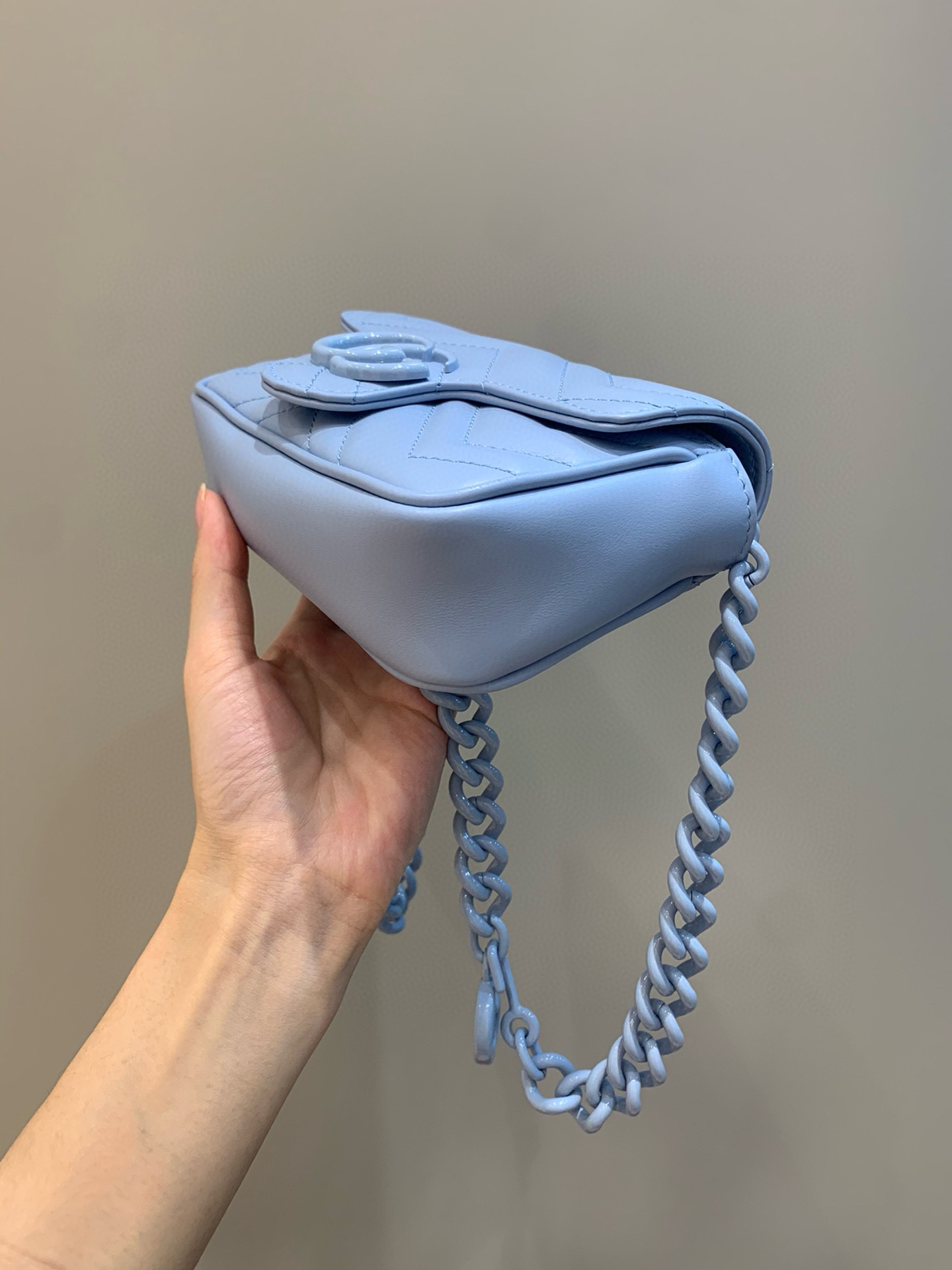 這個顏色拍照巨難拍,怎麽拍都會有色差,實物是比較淺藍的馬卡龍色,非常好看,純正原廠皮然後搭配馬卡龍五金,這個一下子就變得高級起來!