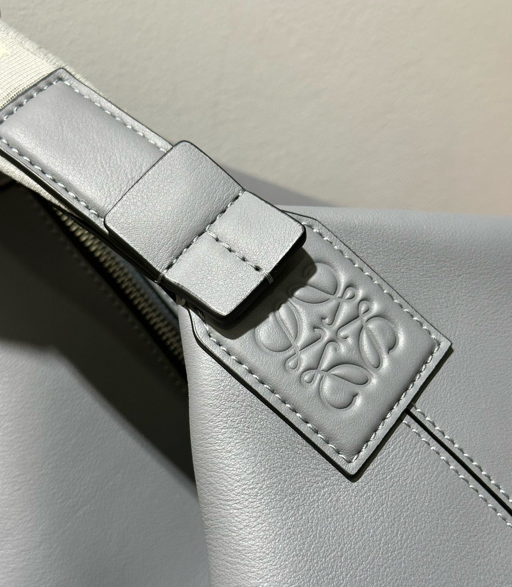 Cubi 斜挎包是一款寬敞且柔軟的手袋,可輕松適應體形。此小號版本采用柔軟光滑牛皮革製成,配有 LOEWE 提花肩帶。