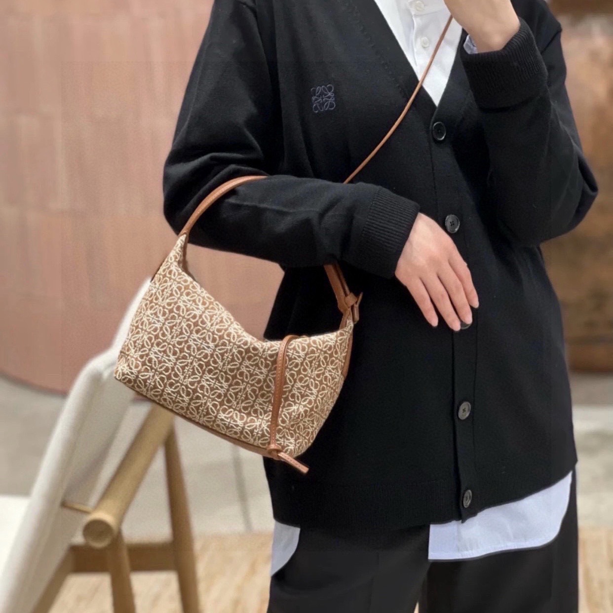 LOEWE羅意威 腋下包小號 Anagram 提花布和牛皮革 Cubi 手袋