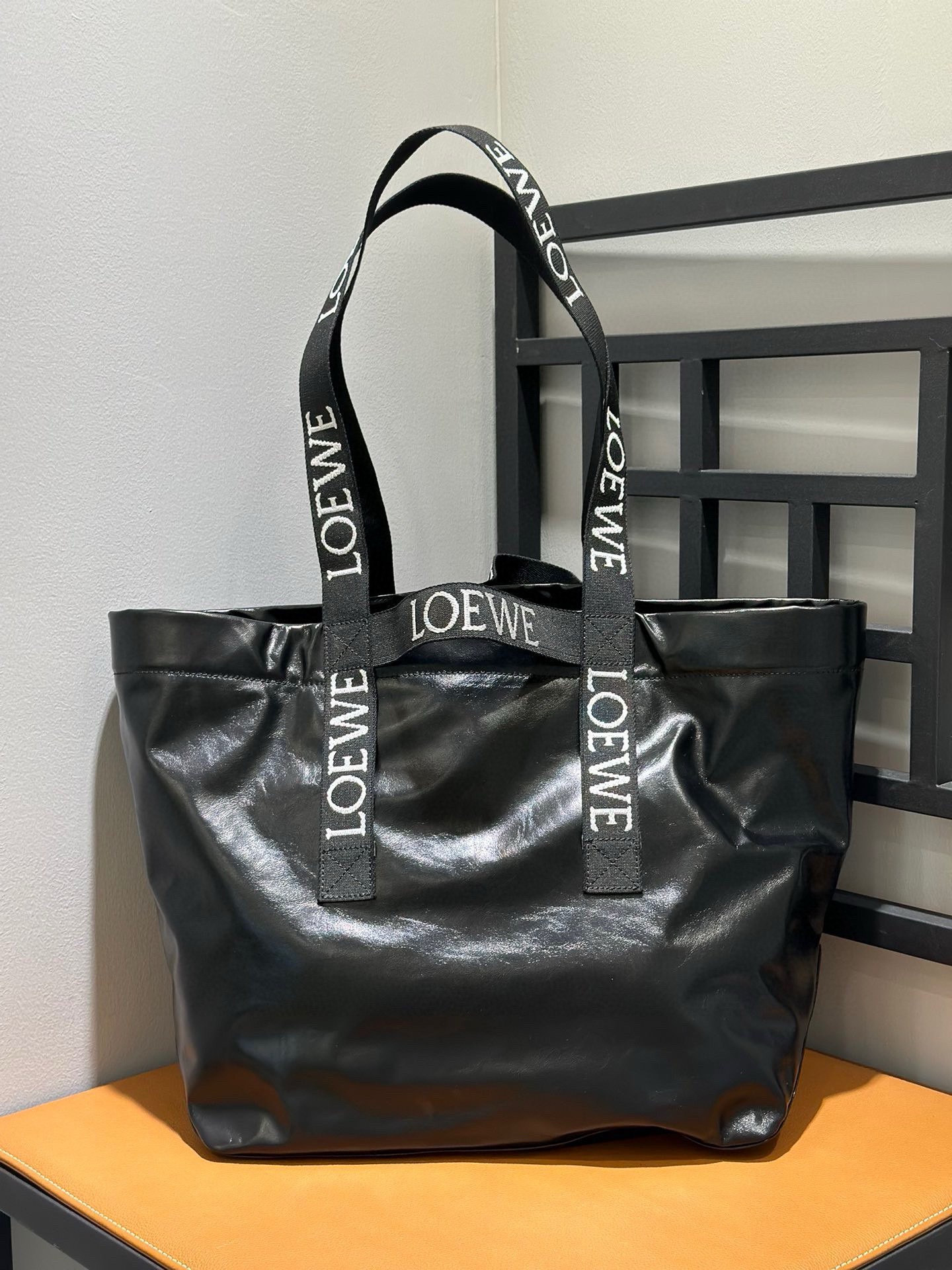 LOEWE包包經典款式專賣店 黑色紙紋牛皮革 Fold Shopper購物袋