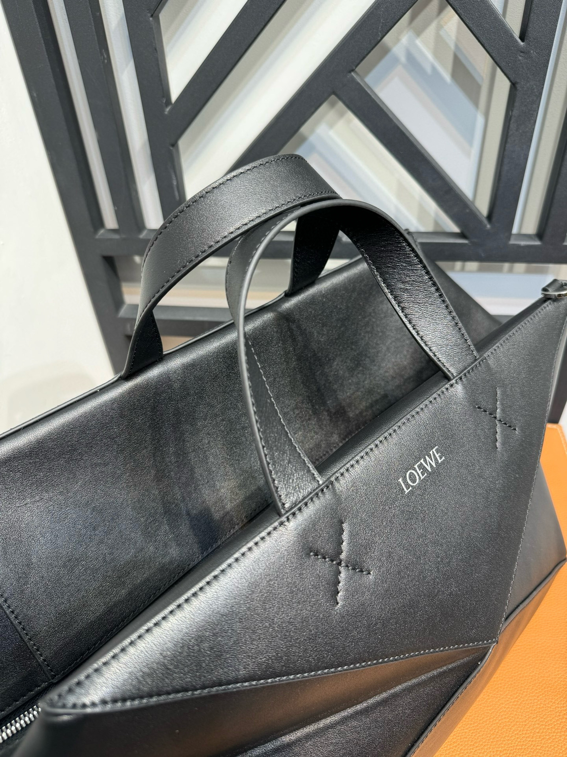 LOEWE羅意威包包 黑色亮面牛皮革 Puzzle Fold Duffle 手袋旅行包