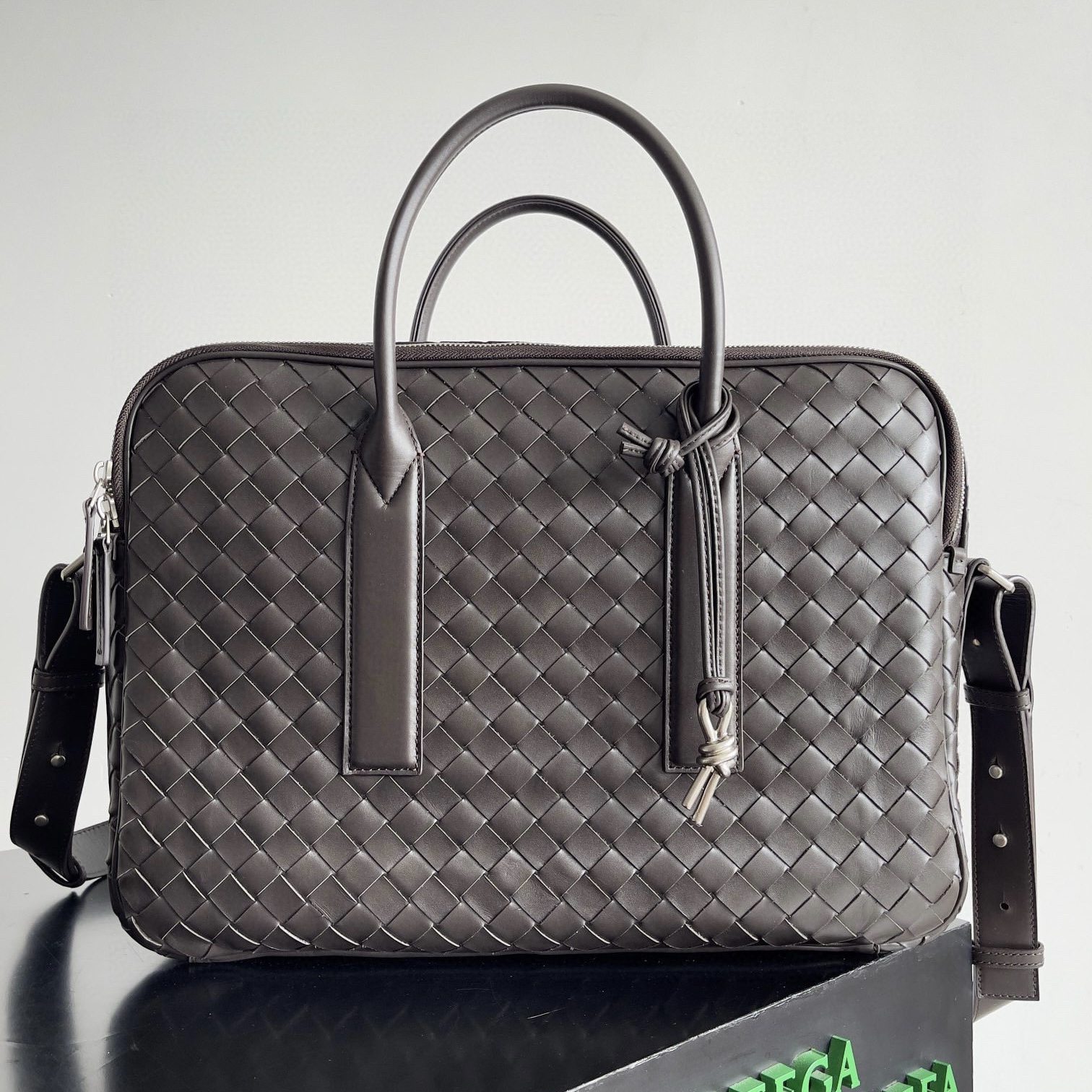大號Intrecciato編織公文包,配有可調節可拆卸肩帶