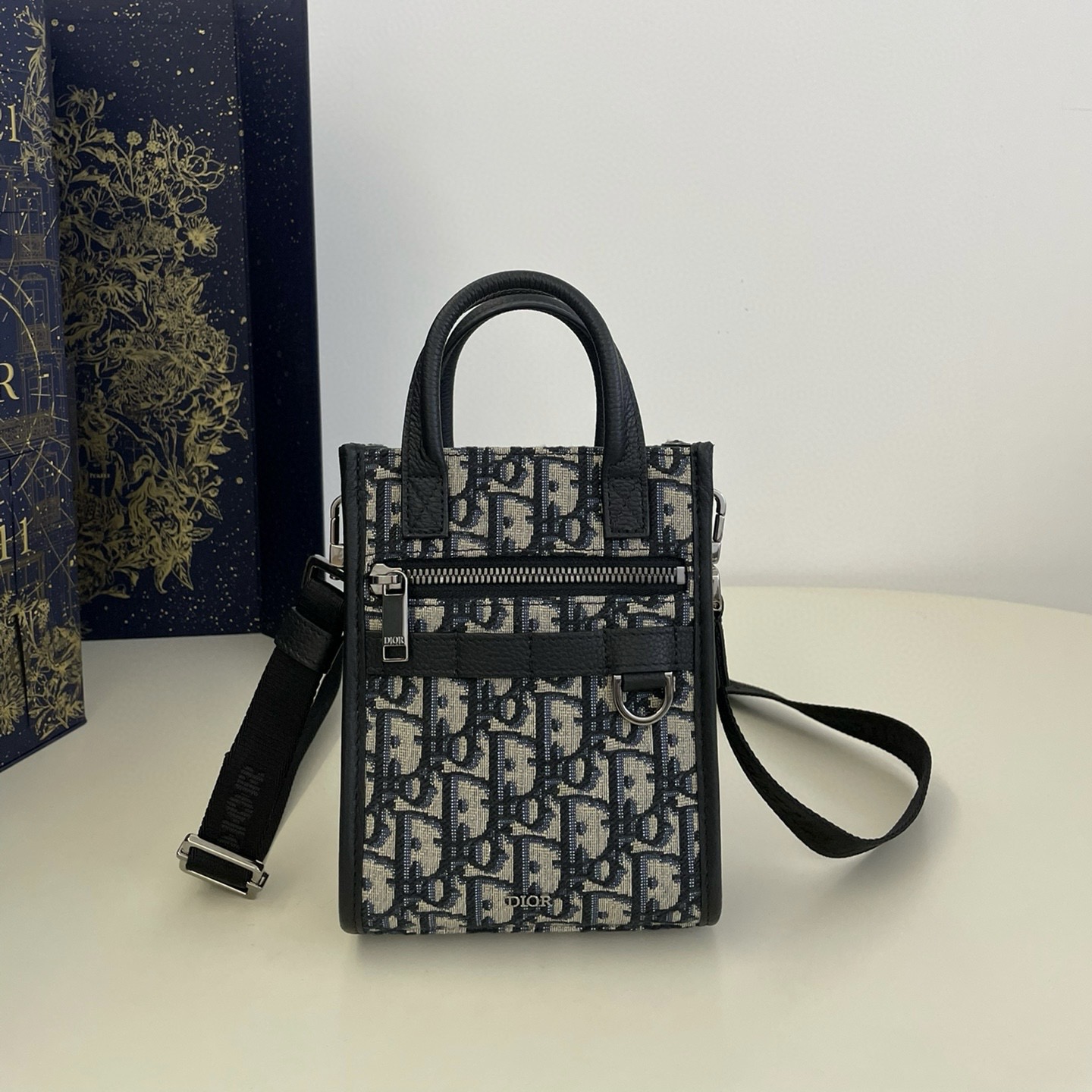 這款 Safari North-South 迷你手袋是二零二四春季男裝系列新品,兼具高雅風範與實用功能。采用米色和黑色 Oblique 印花面料精心製作,飾以黑色粒面牛皮革裝飾提升格調。手袋隔層和正面拉鏈口袋可收納各種日常用品,皮革帶和 D 形飾環可懸掛各種配飾或無線耳機套。搭配頂部皮革手柄和可調節肩帶,可手提、肩背或斜挎