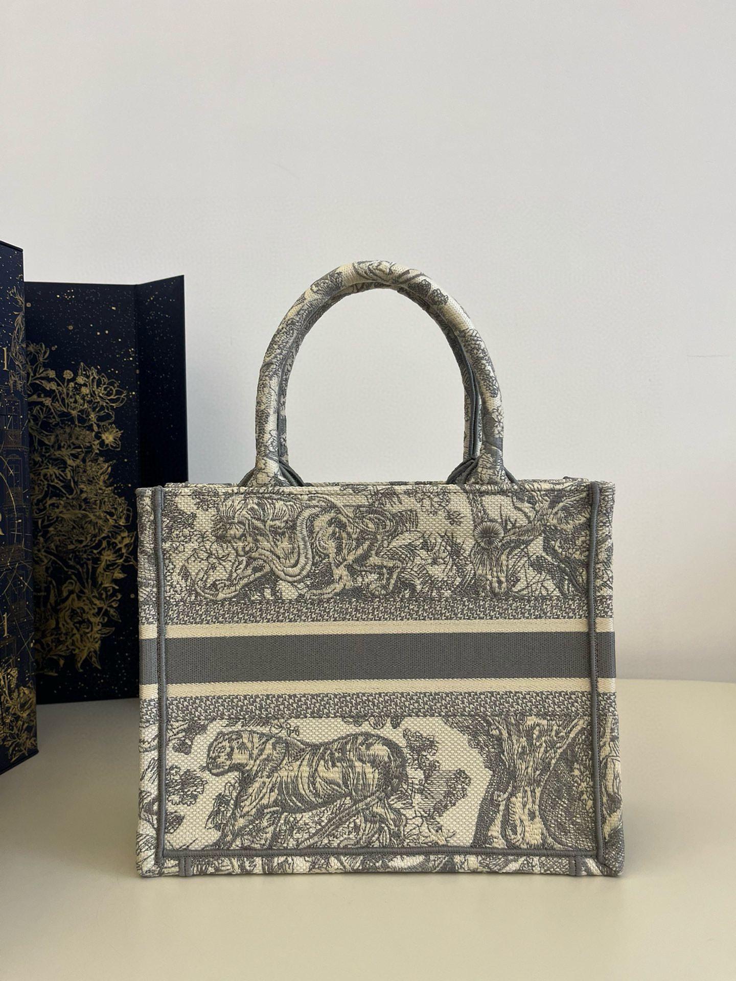 DIOR迪奧女包新款官網旗艦店 𝐌𝐢𝐧𝐢 𝐭𝐨𝐭𝐞 灰老虎 印花刺繡手提包