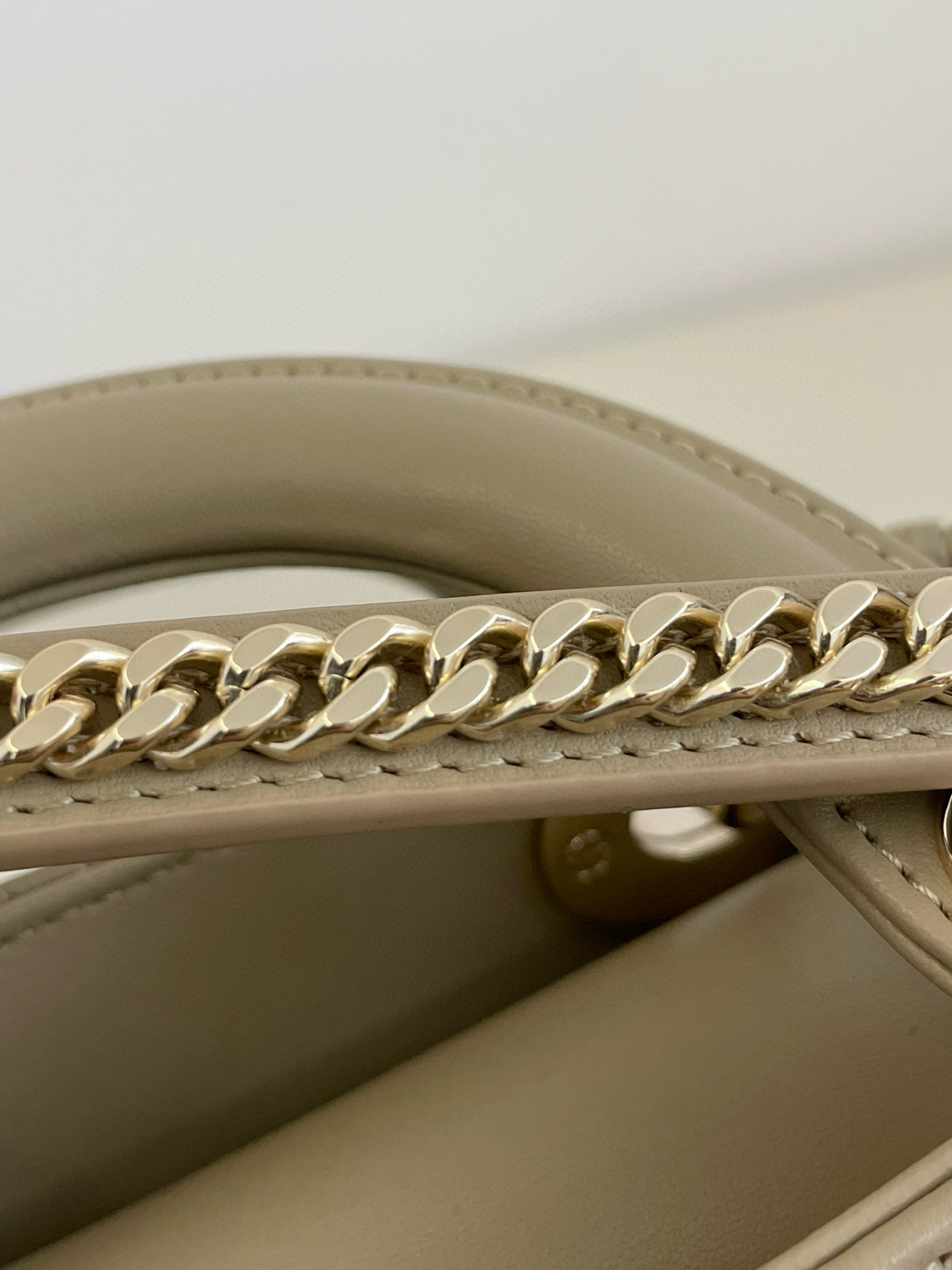 這款 Lady Dior 手袋集中體現了 Dior 對優雅和美麗的深刻洞見。采用羊皮革精心製作,以藤格紋緝面線打造醒目的絎縫細節,時髦典雅的設計經久不衰。點綴以淺金色飾面金屬 D.I.O.R. 吊飾提升格調,為精美的輪廓增添一分靈動。迷你款式,搭配可拆卸的鏈條肩帶,可手提或斜挎,是晚裝的理想伴侶。