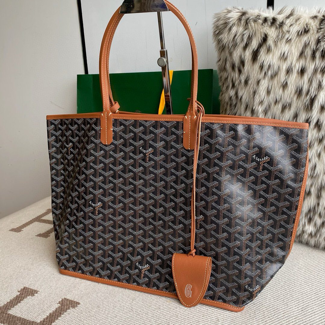 Goyard戈雅包包專櫃經典款式 棕色Aniou雙面小號購物袋托特包