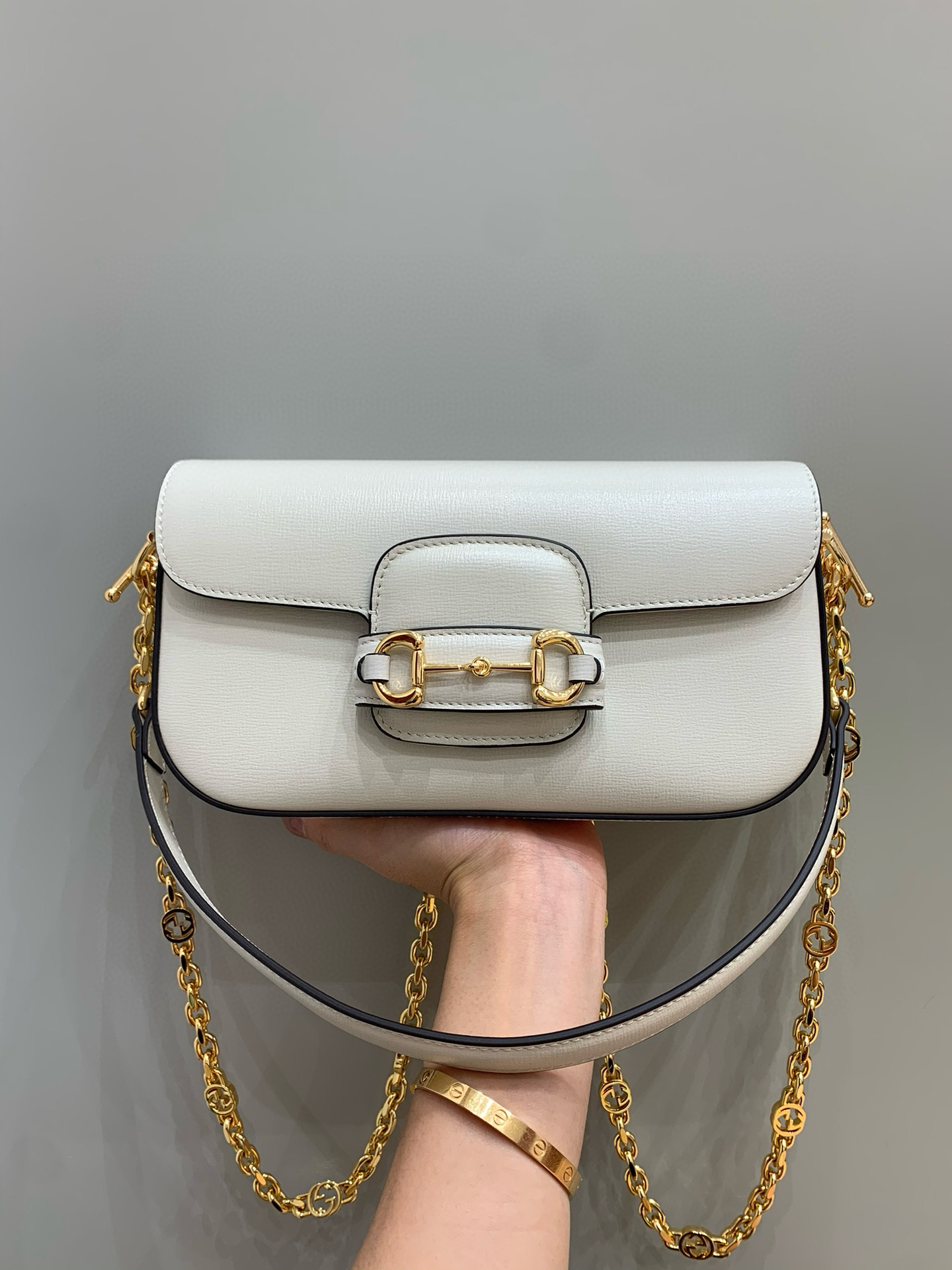 GUCCI專櫃女包2024新款Horsebit 1955系列 白色皮革法棍包