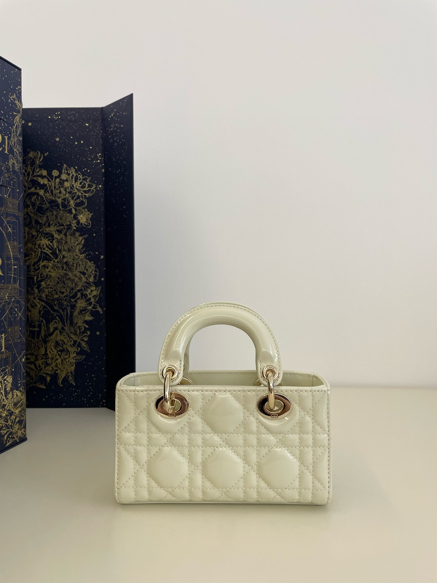 這款 Lady D-Joy 超迷你手袋凸顯 Lady Dior 系列的簡約美學,集中體現了 Dior 對優雅和美麗的深刻洞見。采用奶白色羊皮革精心製作,時髦典雅的設計經久不衰。飾以藤格紋緝面線,點綴以淺金色飾面金屬 D.I.O.R. 吊飾提升格調。搭配可拆卸的鏈條肩帶和可調節、可拆卸的皮革肩帶,可手提、肩背或斜挎,是日常或晚裝造型的理想之選。