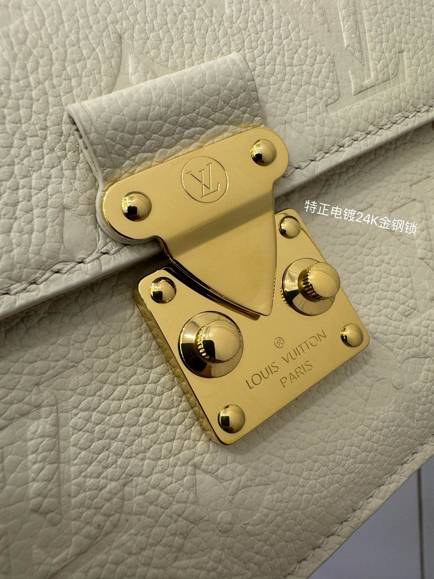 Wallet On Chain Metis 手袋取材粒面 Monogram Empreinte 皮革,上面壓印品牌 Monogram 圖案。外觀與眾不同,梯形設計,前翻蓋以 S-lock 鎖扣固定,傳承自經典的路易威登旅行箱。可拆卸鏈條可實現斜挎。