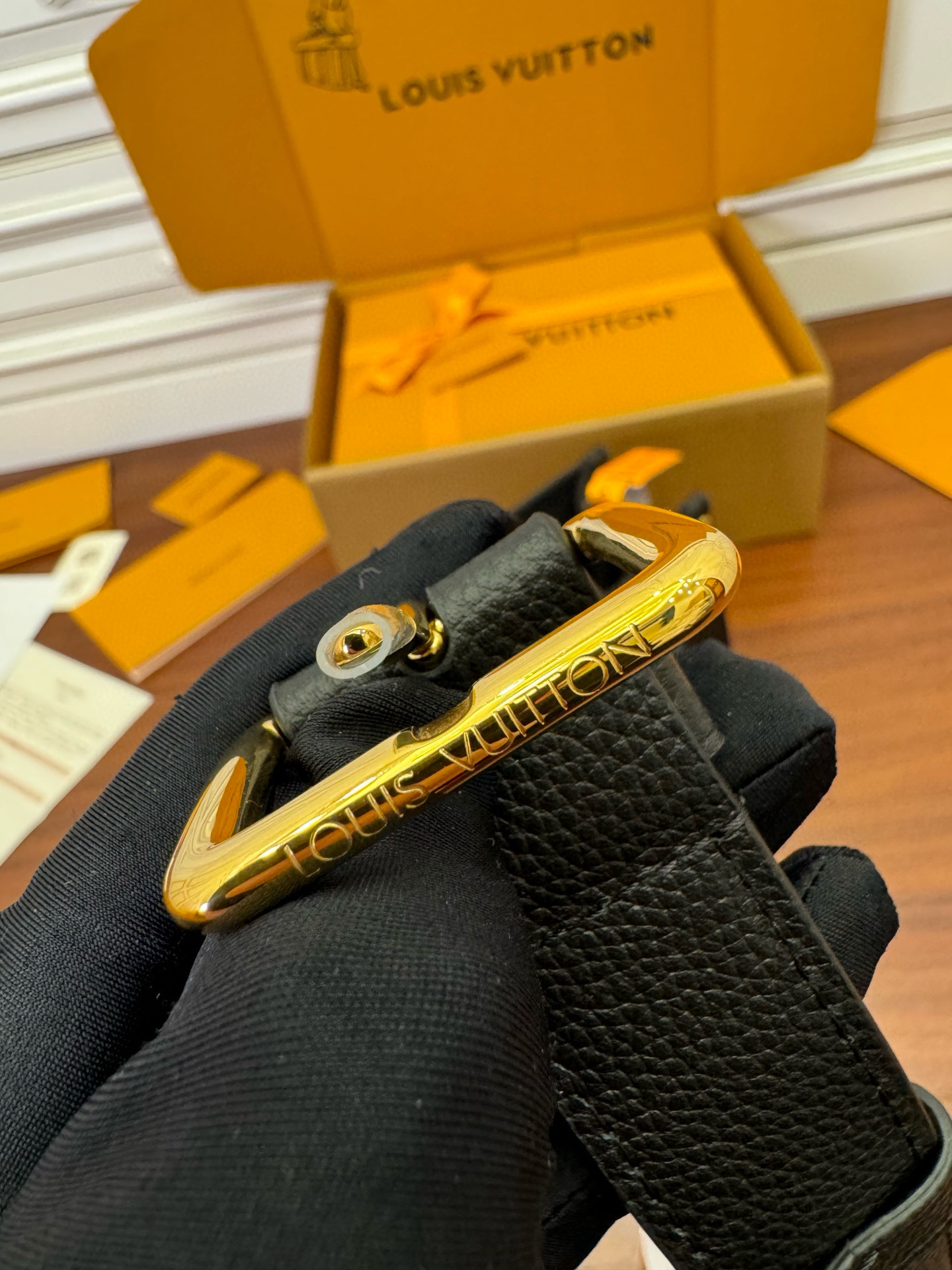 粒面牛皮革 粒面牛皮革飾邊 微纖維內襯 金屬件 LV 旋扣開合 內貼袋