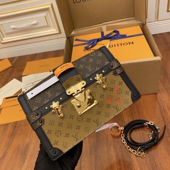 LV新加坡官網專櫃代購多少錢 M43596 TRUNK CLUTCH 手袋 老花經典款