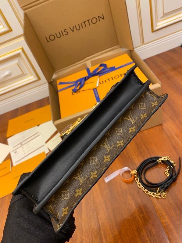 頂級原單 POCHETTE TRUNK M43596 升級版回貨升級鋼鎖新出的軟盒子 尺寸比之前出的硬箱子大一點 配的細肩帶部分是鏈條 可以拆卸下來 可搭配其它款式肩帶 上身效果非常好看 經典老花搭配黃花 全鋼五金 尺寸 20x12x5.5cm