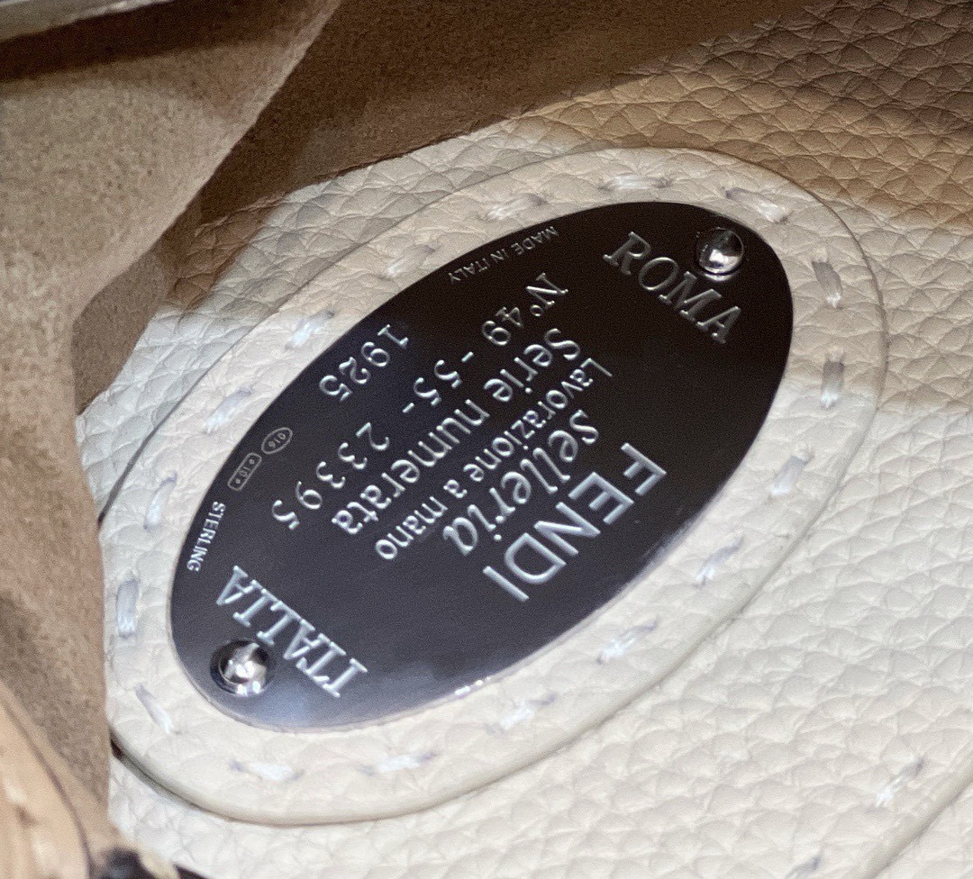 突顯FENDI非凡工藝和創意元素的標誌性Peekaboo ISeeU小號手袋。於2009年推出的Peekaboo手袋是經典手袋的標誌。此名稱靈感源自兒童遊戲「躲貓貓(Peek-a-boo)」,突顯手袋裏裏外外的美感。 鴿灰色小牛皮材質。小牛皮內襯,兩個隔層由鴿灰色和黑色雙色柔軟納帕皮革硬質隔板隔開,配有內部拉鏈袋。飾有玳瑁殼有機玻璃飾條、搭扣和金色飾面金屬件。 兩側飾有標誌性扭鎖。 手袋配有手柄和可調節、可拆卸式肩帶,可手提、肩背或斜挎。 意大利製造