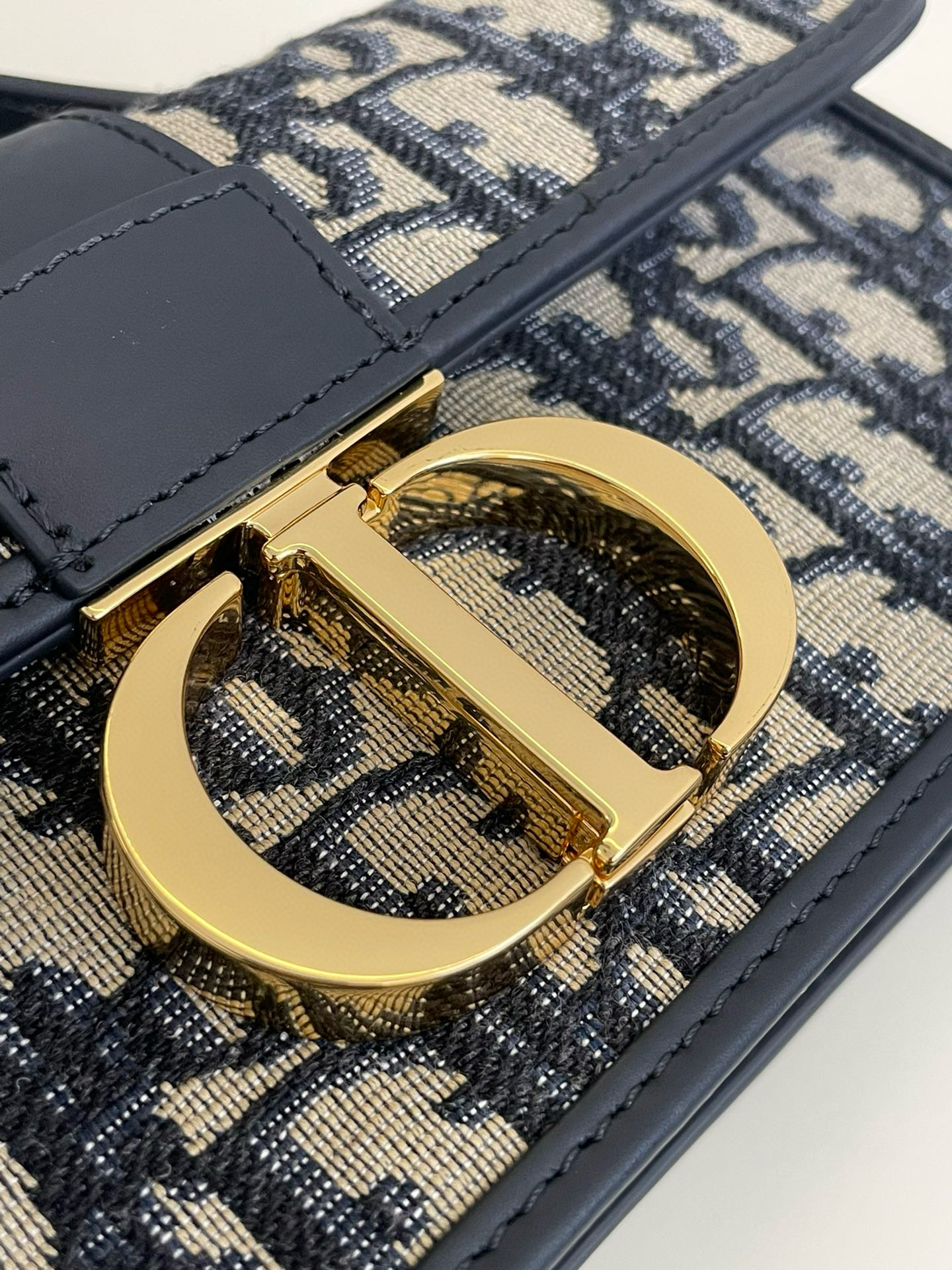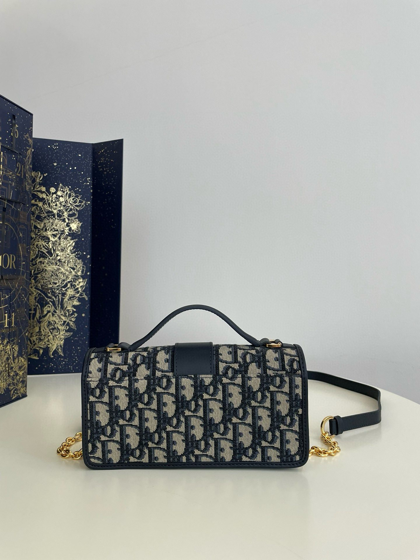 這款 Miss Montaigne 迷你鏈條手袋是二零二四冬季成衣系列新品,實用而不失優雅。采用藍色 Oblique 印花面料精心製作,翻蓋飾以復古金色飾面金屬 CD 扣環,靈感源自 Christian Dior 香水瓶的封口,可收納各種日常用品。搭配頂部手柄和結合皮革帶的可調節鏈條肩帶,可手提、肩背或斜挎,是打造日常造型的理想手袋。