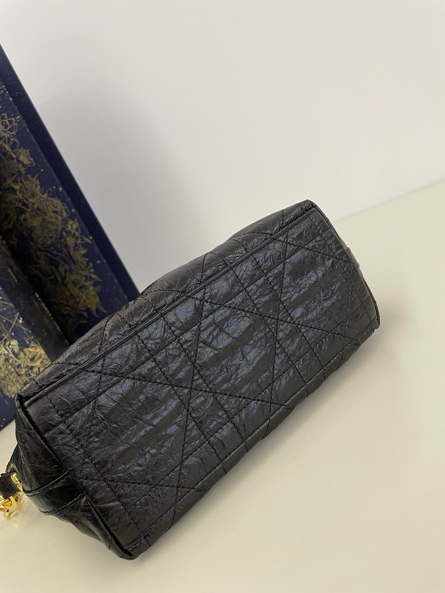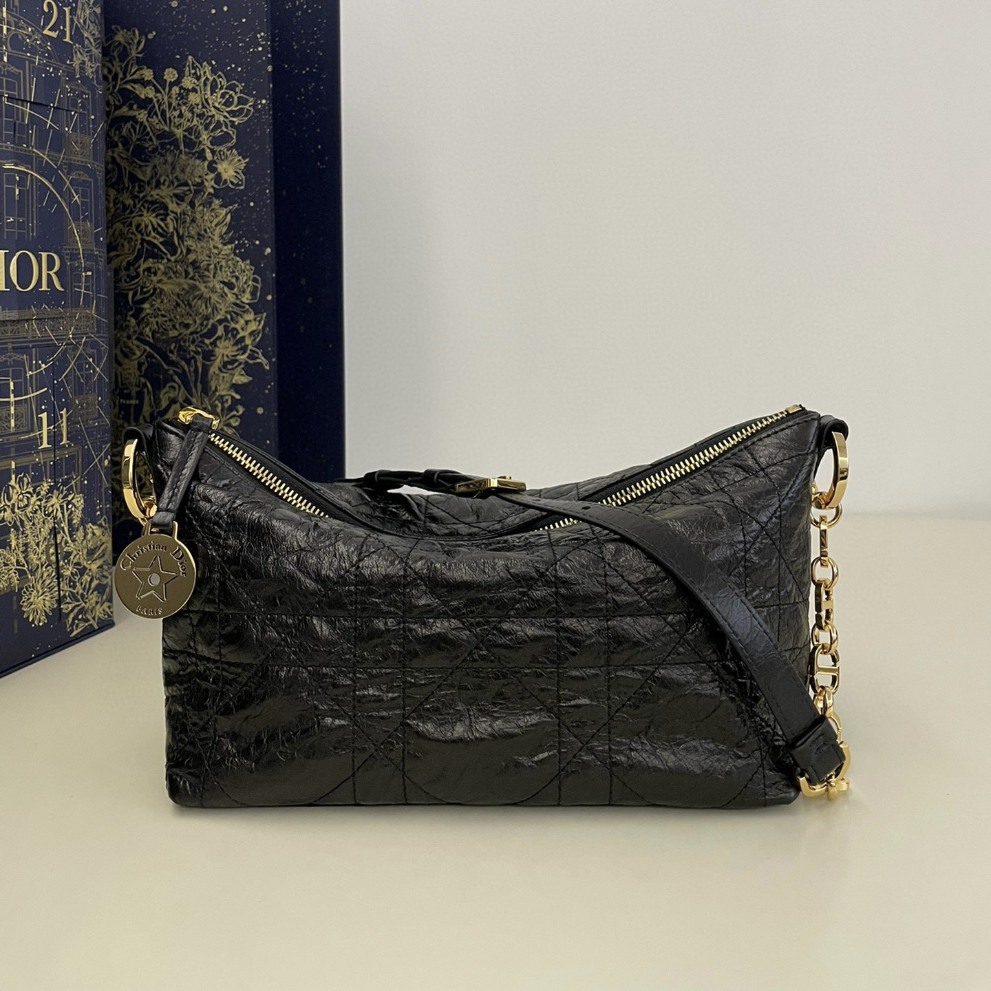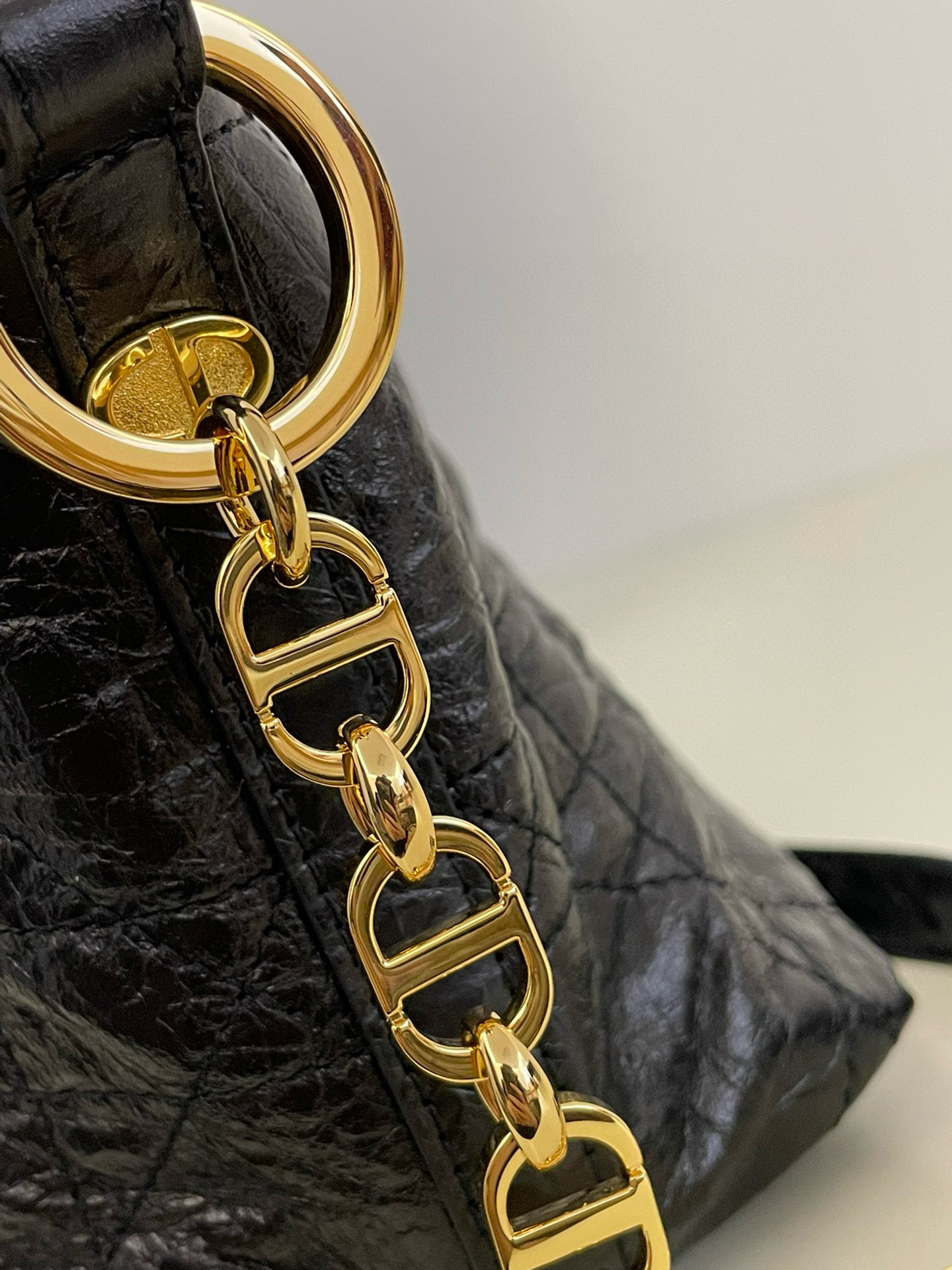 DIOR迪奧新款手袋 Diorstar Hobo 鏈條手袋黑色褶皺牛皮革