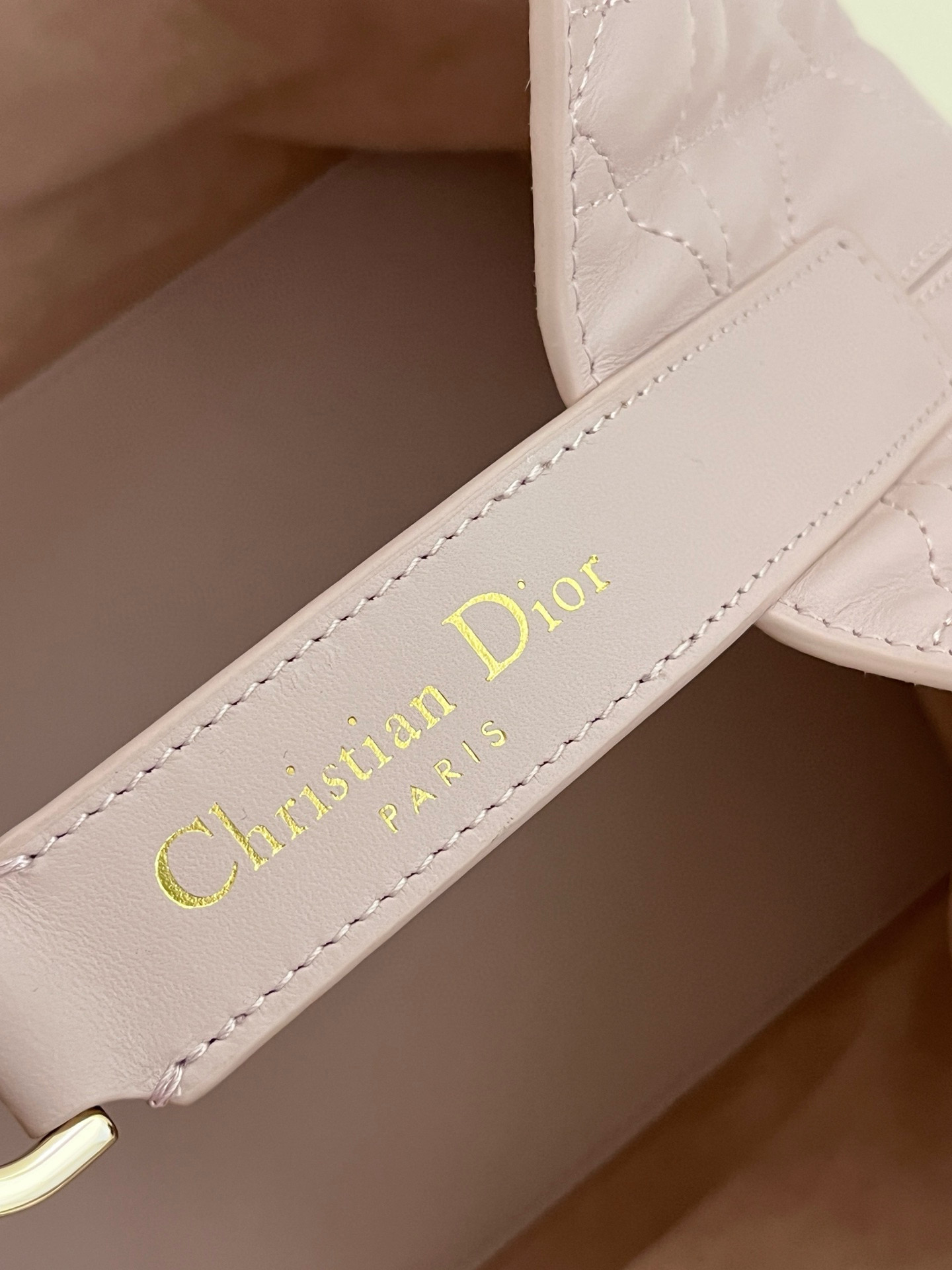 這款 Dior Toujours 手袋休閑實用,別具一格。采用淡粉色牛皮革精心製作,飾以超大藤格紋緝面線,寬敞的內部隔層搭配小袋,可有序收納各種日常用品。設有纖細皮革系帶開合,可安全收納各種物品,另有 CD Lock 字母 D 旋鈕式扣環,可調節兩側,提升格調。小號款式,皮革頂部手柄帶有可調節細節,可輕松手提。