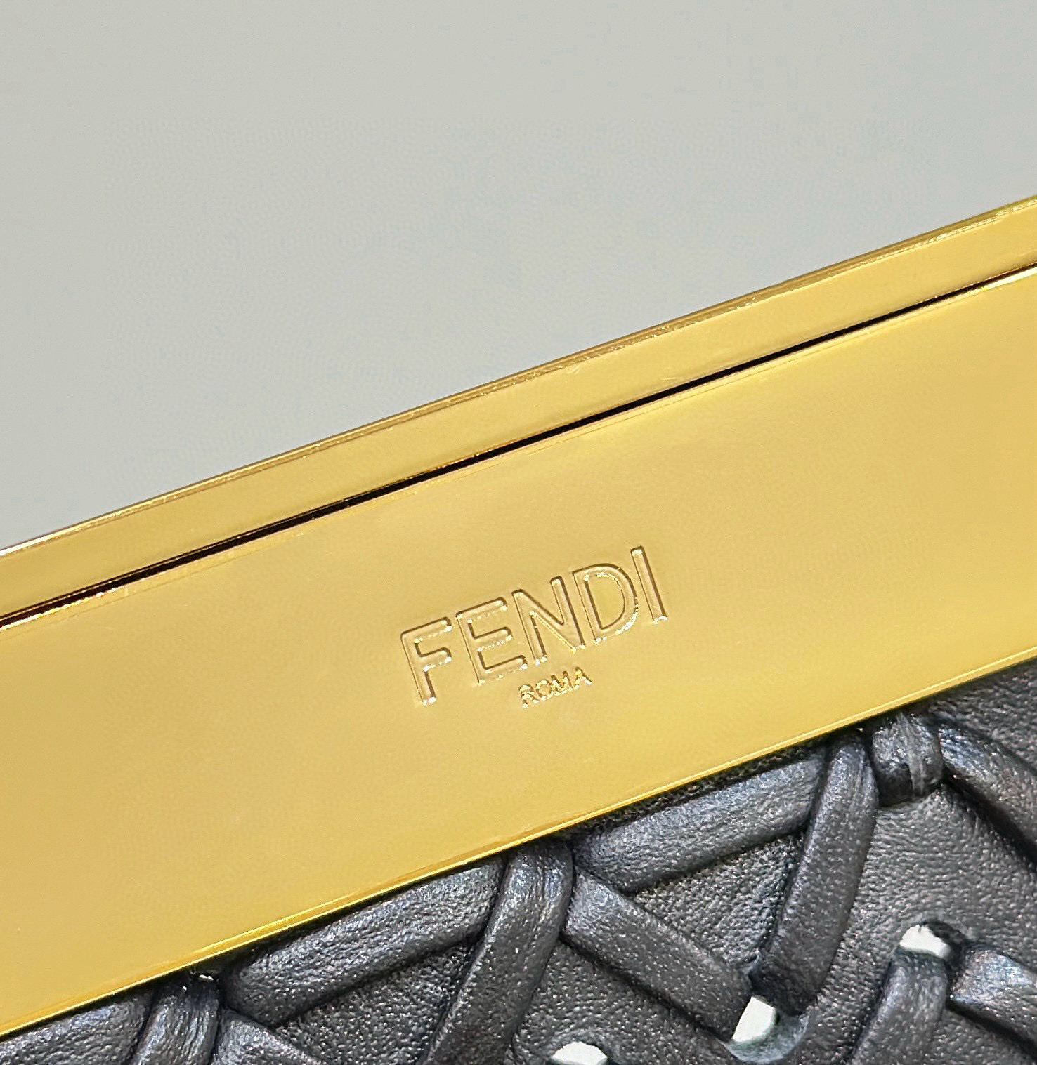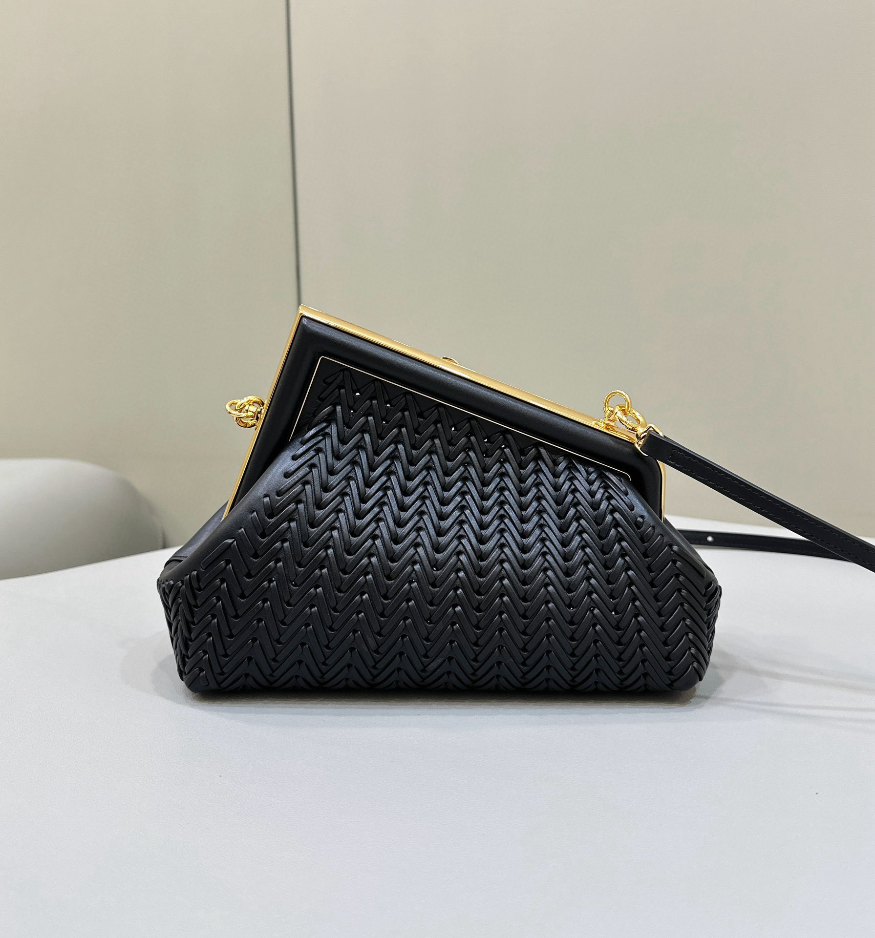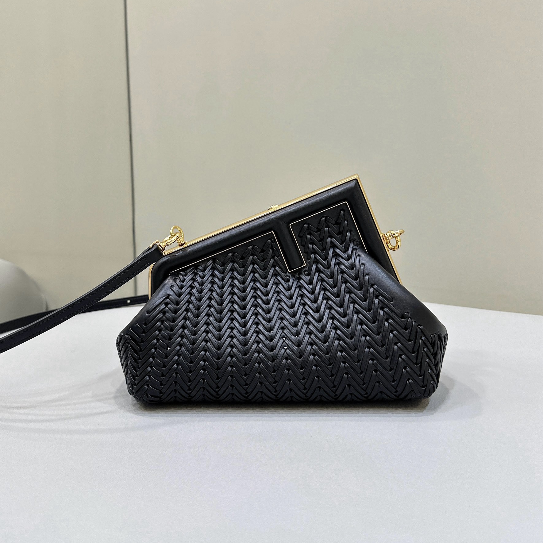 FENDI First小號手袋,精細交織皮革材質,同色系納帕皮革上固定有超大F金屬搭扣。