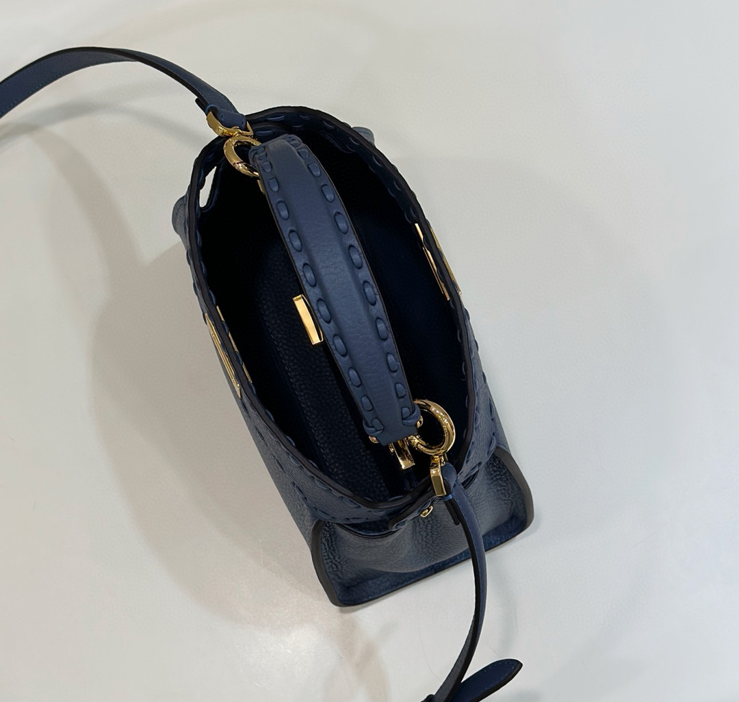標誌性Peekaboo小號手袋,以220針大號明線手工縫製而成,代表著源自1925年、由FENDI工匠世代傳承的Selleria經典工藝。