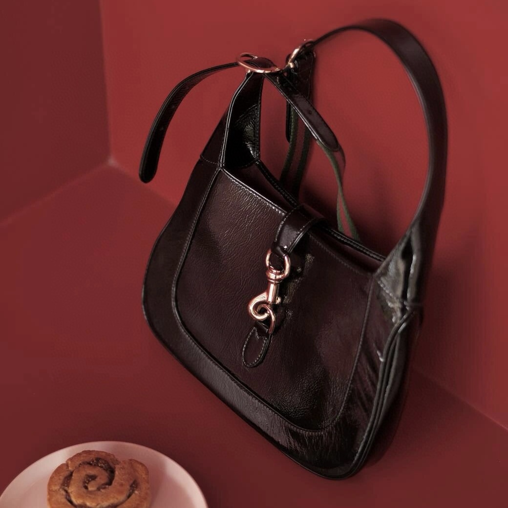 這款全新Gucci Jackie系列肩背包以上等優質皮革匠心打造,盡展品牌經典肩背包的精湛工藝、新月造型和時尚設計。淺金色調配件、皮革滾邊和飾有紅綠織帶的附贈包帶結合,為這款以黑色漆皮打造而成的Gucci Jackie系列小號肩背包帶來更多穿搭可能。