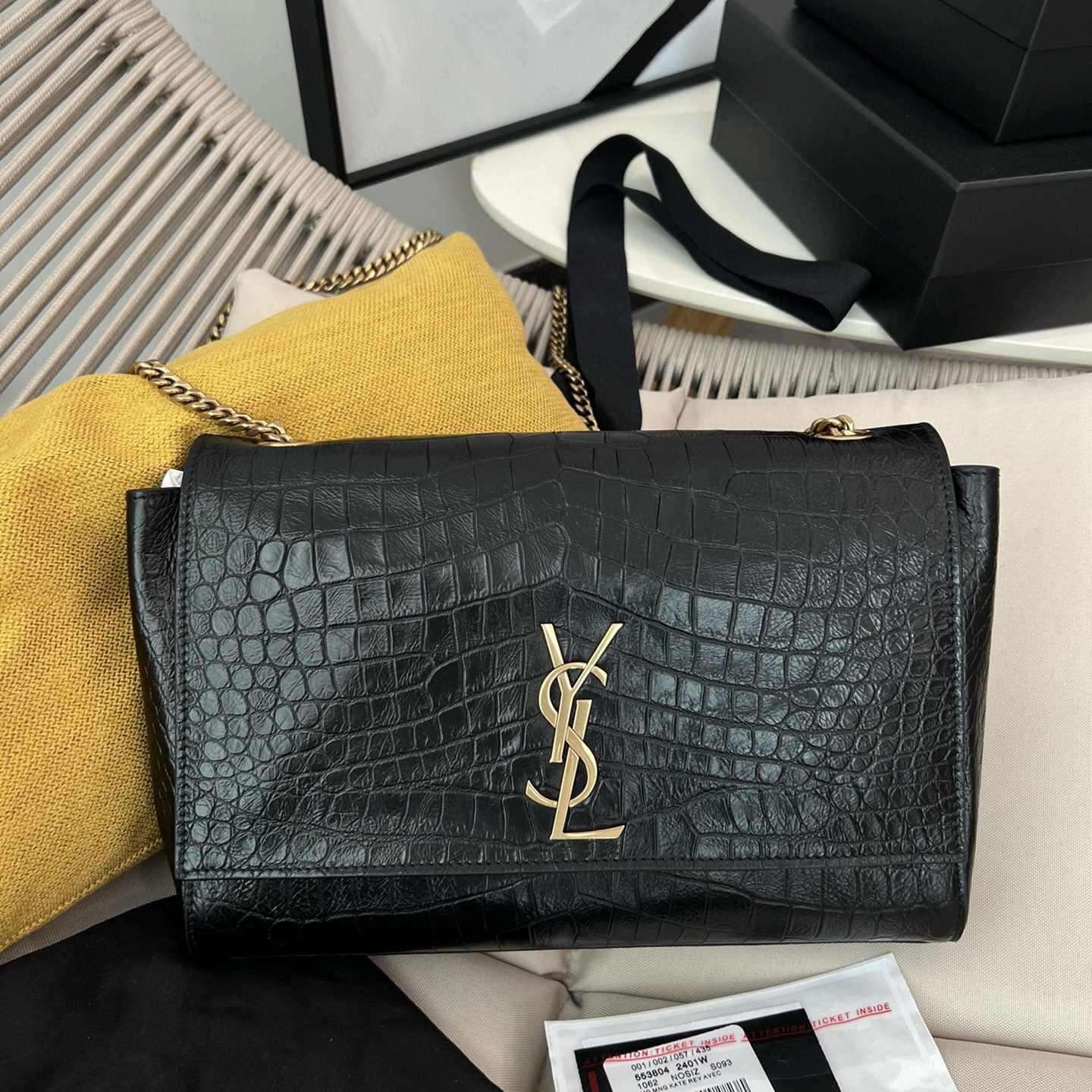 YSL聖羅蘭女包Hong Kong官網價格圖片 KATE中型鱷魚紋壓紋皮革鏈條包