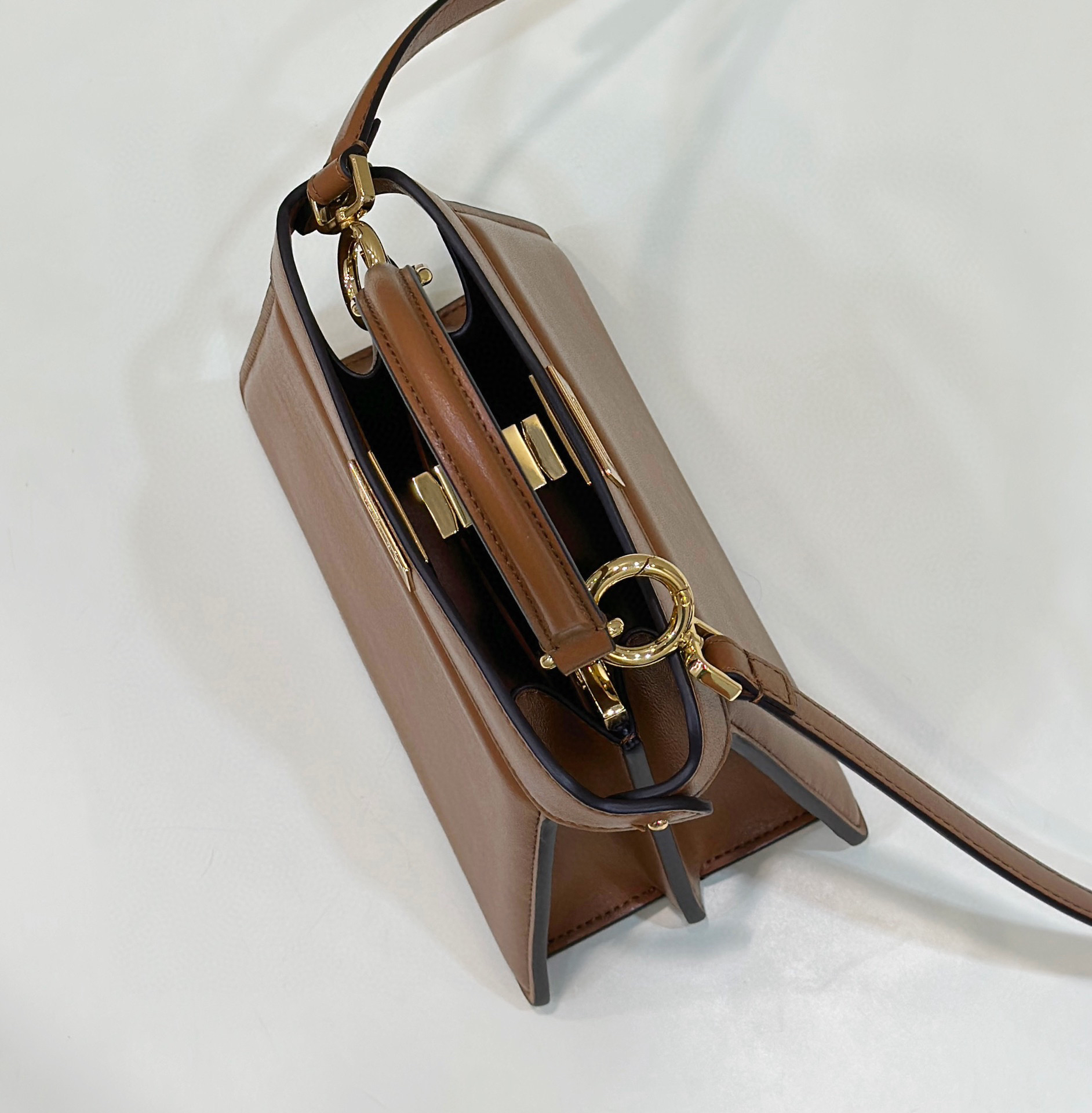 芬迪女包 Peekaboo ISeeU Petite 棕色帶夾層納帕皮革手袋