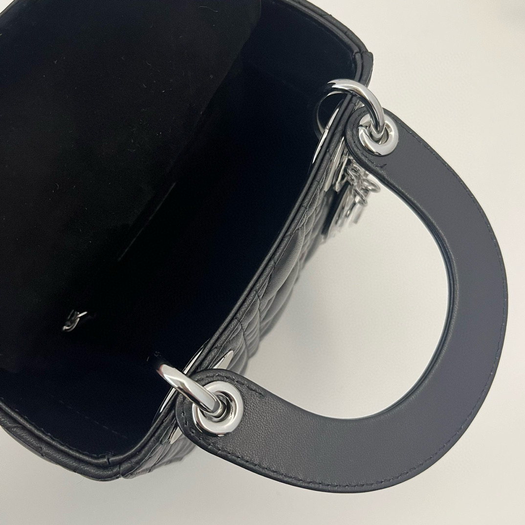 DIOR迪奧包包經典款式 戴妃包 黑色羊皮革迷你Lady Dior 手袋
