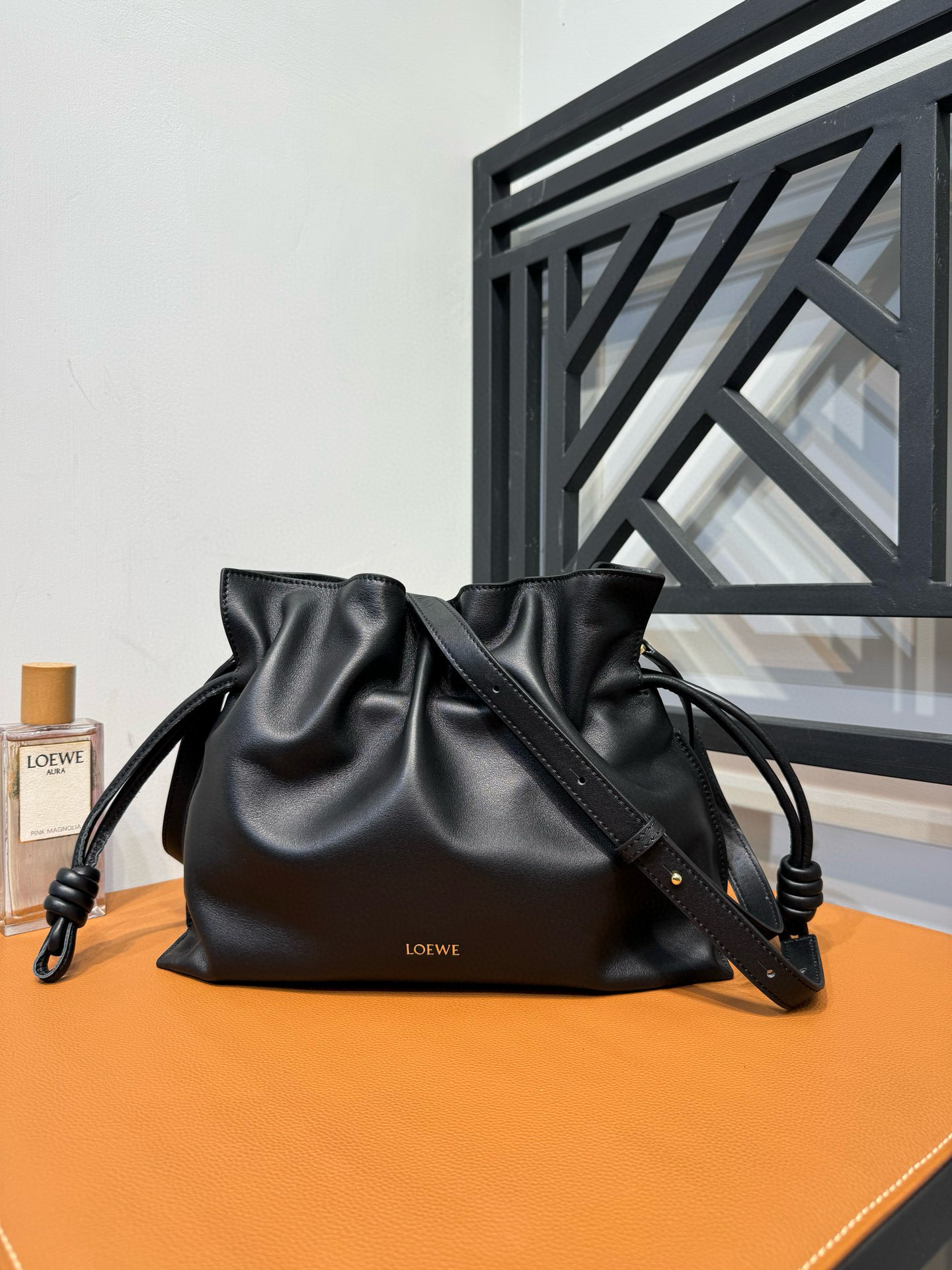 LOEWE女包中國官網代購入口 新款福袋包 黑色中號 Flamenco肩背包