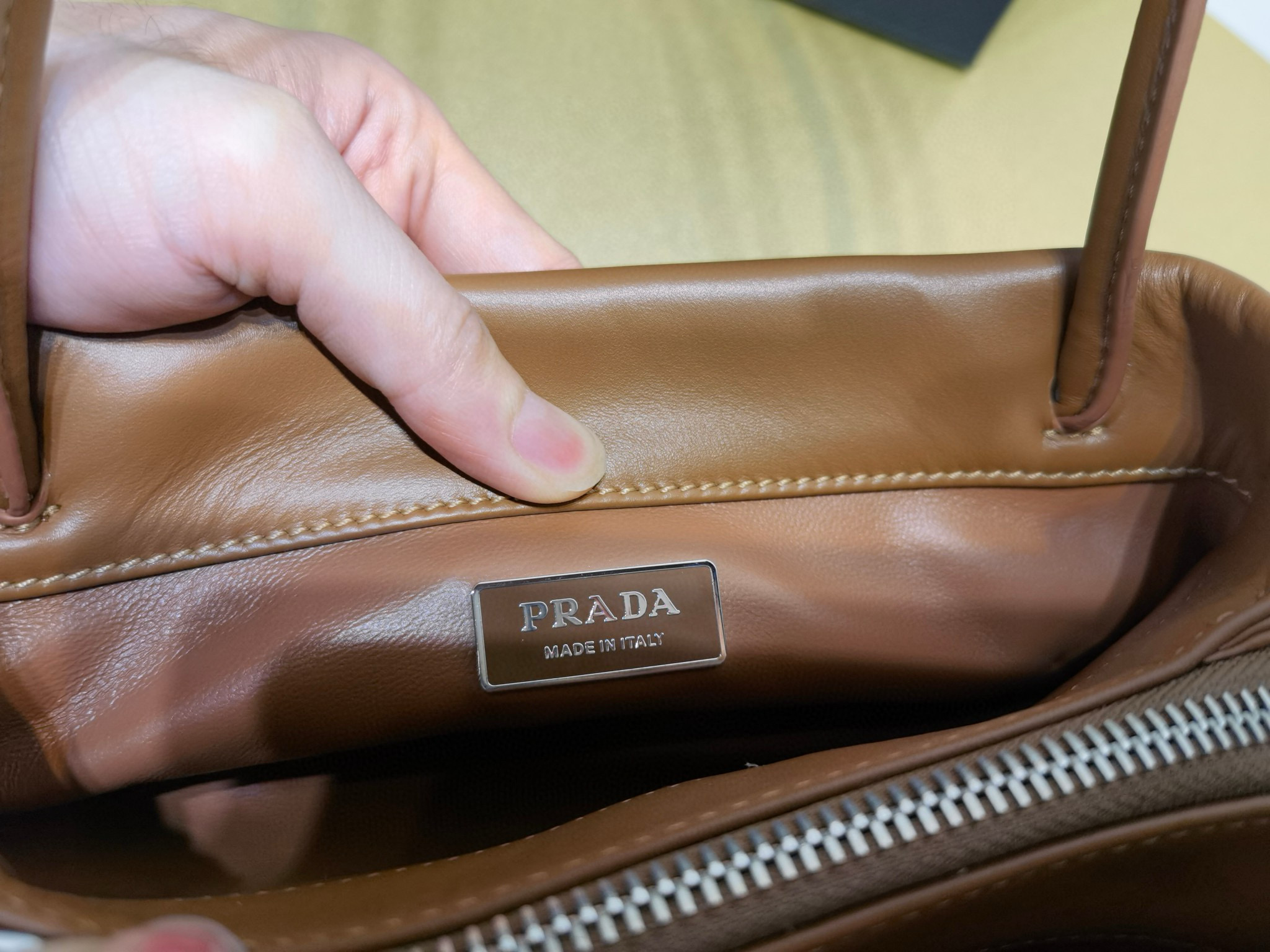 PRADA普拉達包包一般多少錢 官方官網新款棕色皮革腋下包