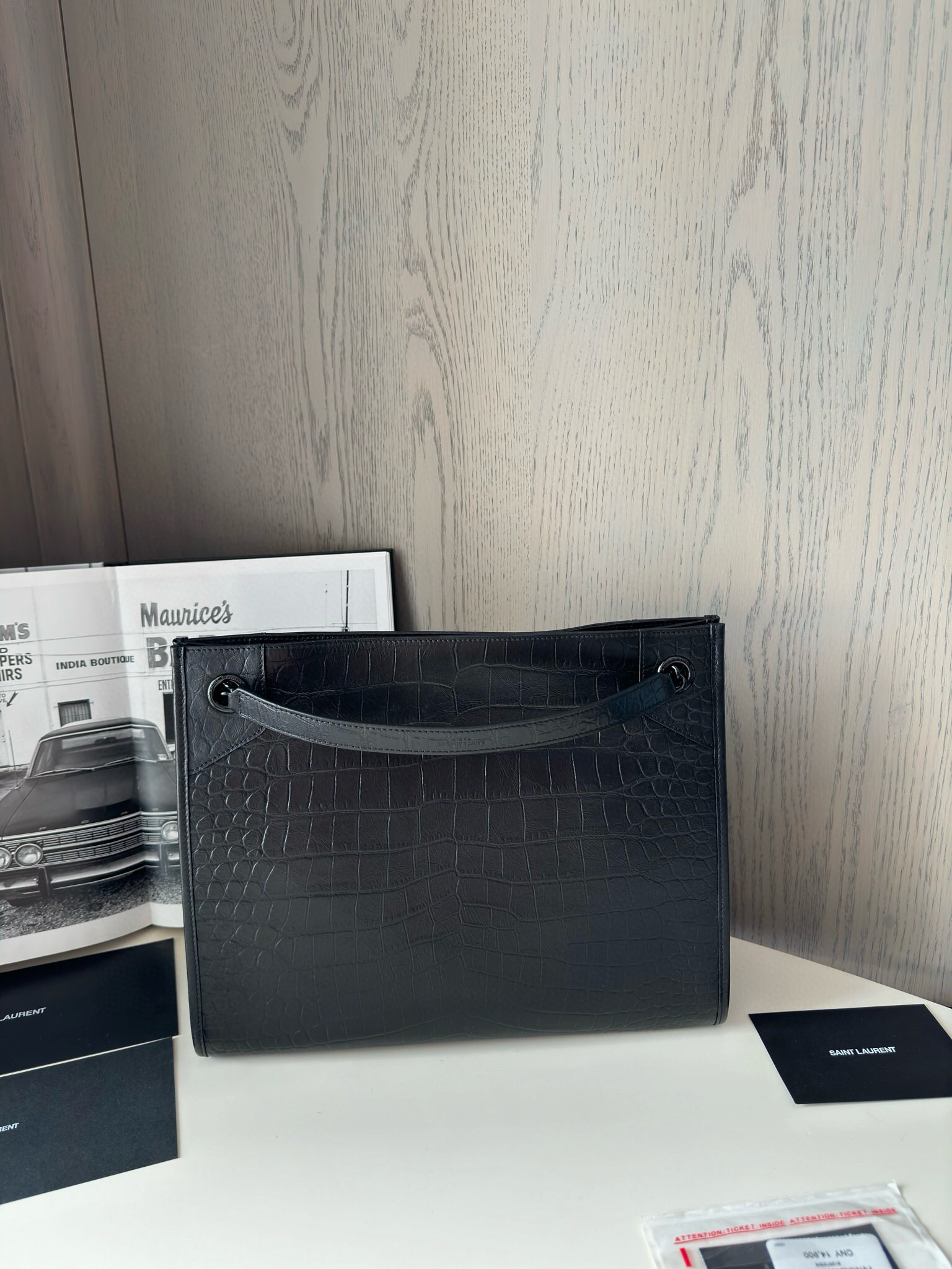 SAINT LAURENT聖羅蘭包包官網限定款 黑色NIKI SHOPPING鱷魚壓花購物袋