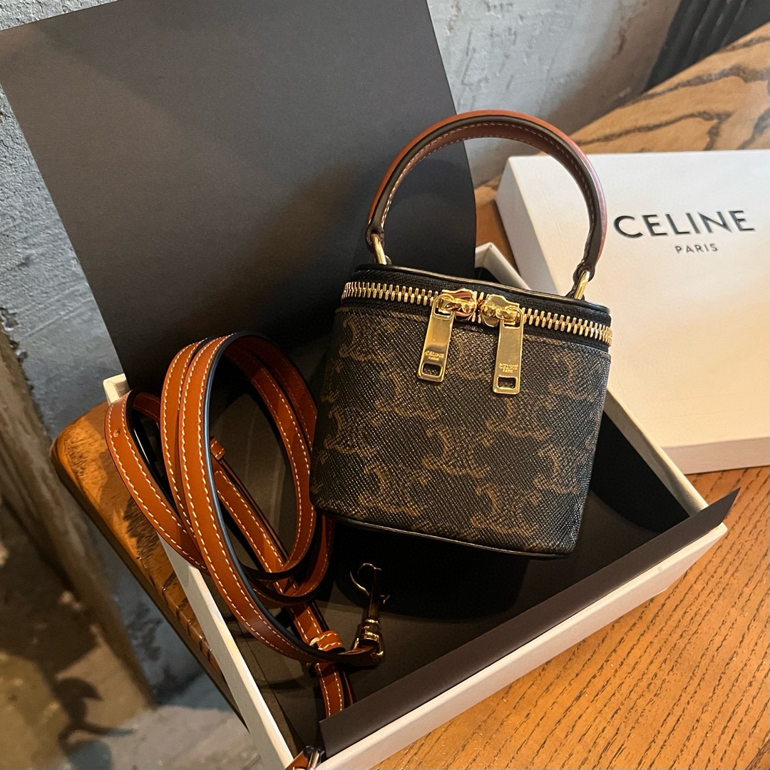 CELINE思琳包包Hong Kong官網代購免稅店 新品Vanity老花化妝包斜挎包