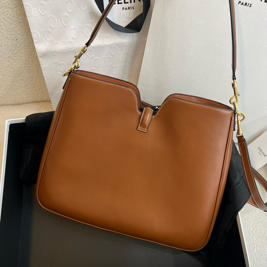 CELINE新款女包一般多少錢 CAMILLE 16 SOFT中號光滑牛皮革腋下包 棕色