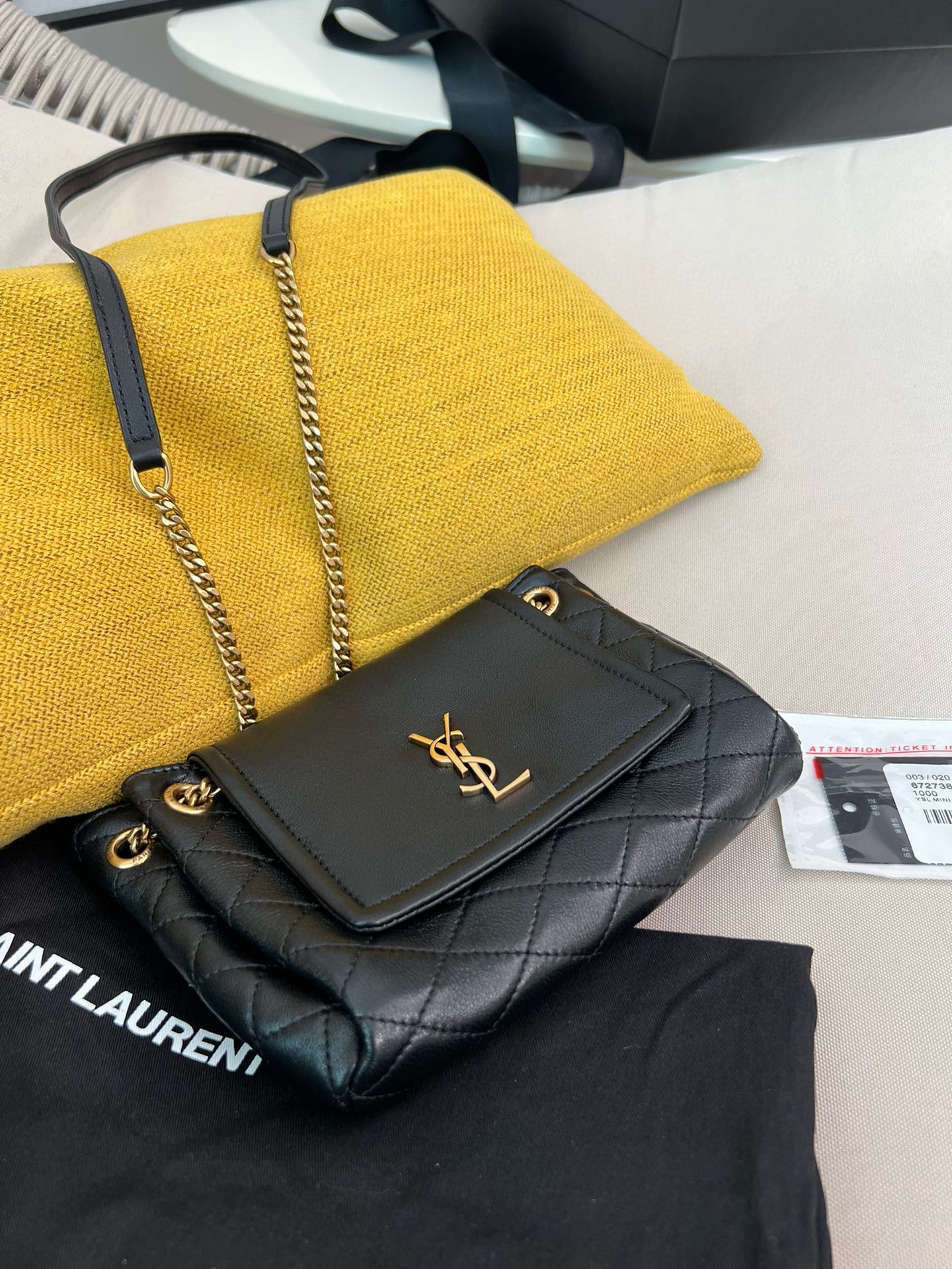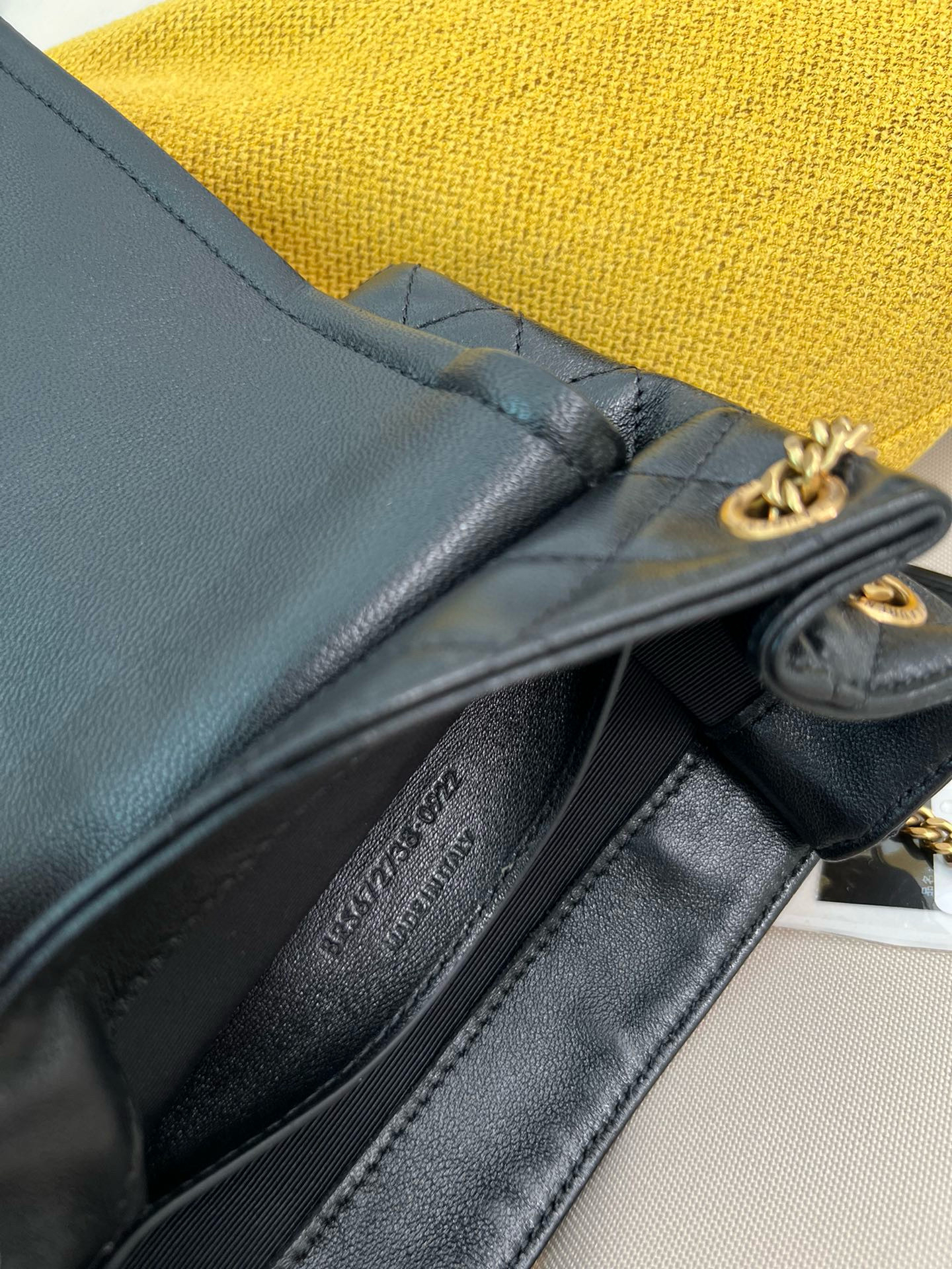 Monogram nolita手袋,前翻蓋飾以金屬聯結ysl字母標誌,飾菱形紋絎縫包縫,搭配鏈條和皮革背帶,可以兩種方式攜帶。