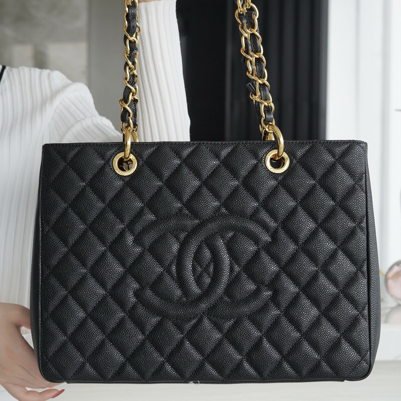 經典款之 𝑮𝒓𝒂𝒏𝒅 𝑺𝒉𝒐𝒑𝒑𝒊𝒏𝒈 𝑻𝒐𝒕𝒆 (簡稱ɢsᴛ )以超大容量的設計風格吸引眼球,被許多小香愛好者稱之𝑪𝒉𝒂𝒏𝒆𝒍 包袋入門款式的首選。容量超出你的想象,筆記本、雨傘、化妝包統統吃得下…可譽稱為𝐂𝐡𝐚𝐧𝐞𝟏 𝐛𝐚𝐠 性價比之王!自重不重,魚子醬耐操小牛皮,為你遮風擋雨絲毫不嬌氣,有沒有跟我一樣喜歡中古包包的姐妹?