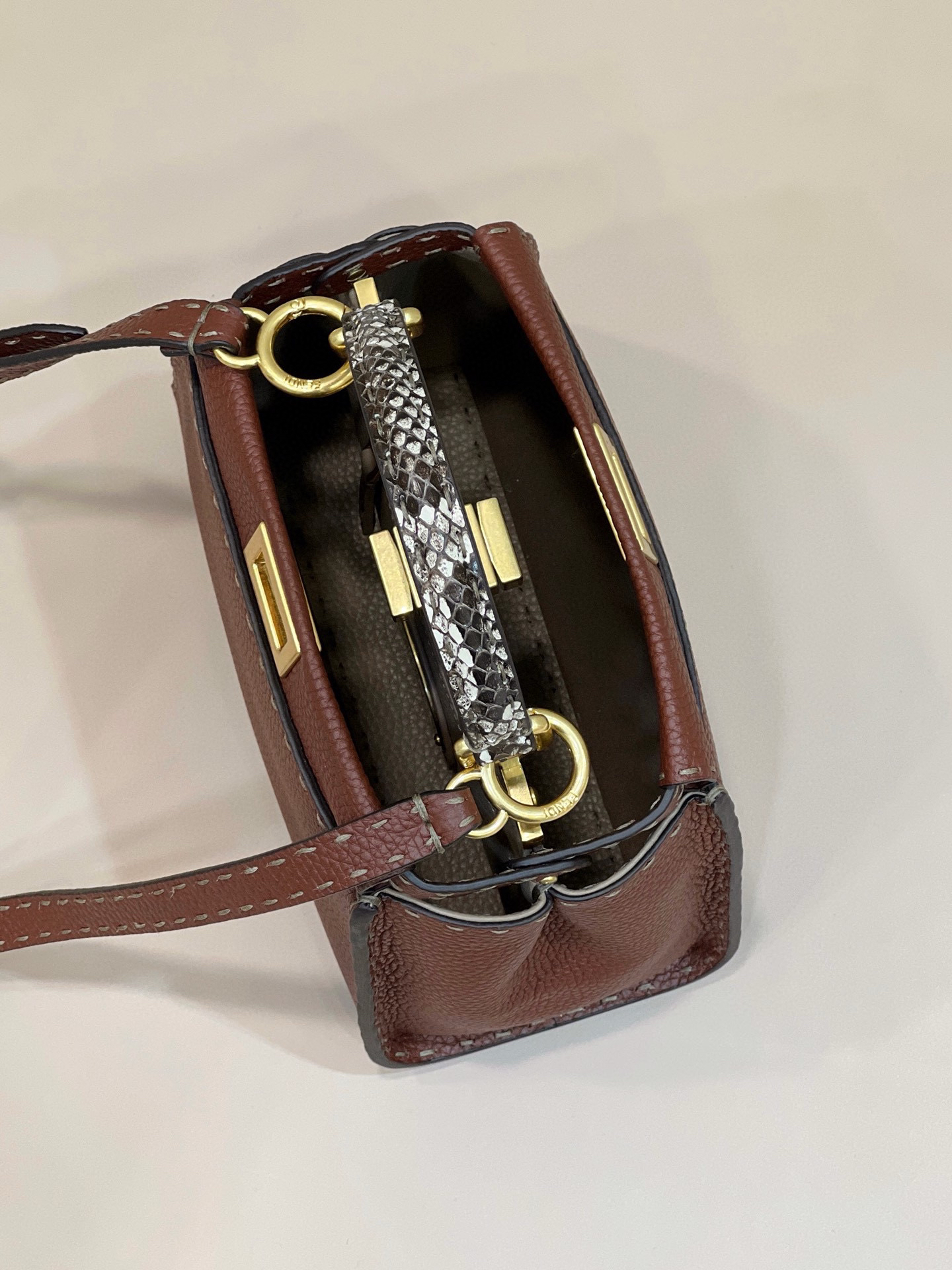 超級適合通勤的一款小貓包𝐏𝐞𝐞𝐤𝐚𝐛𝐨𝐨,手工外縫線設計,全牛皮搭配蛇皮手腕別有一番風味,上身超顯氣質感優雅永不過時。size:23cm